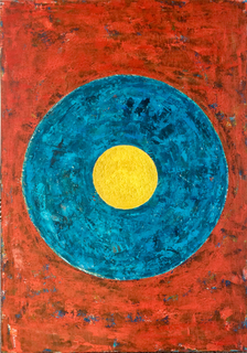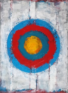 Opisany na odwrocie: ‘M. Lamoro 2018r. „Niebieski, żółty, czerwony” z cyklu „Figura czy kształt?”’