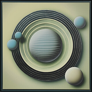 sygn., dat. i opisany na odwrocie: 2025 / Pi Square / "Quantum Echoes - / - Human Story" / no. 265" / acrylic on / moisture-resistant HDF / isolation: Golden Gloss / Medium / top: polyure-/...