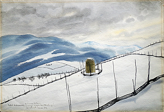 Na odwrocie pejzaż zimowy z zabudowaniami; ponadto p.d. napis (ołówkiem): Chantacler [sic!], near St. Adele.