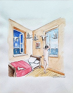 akwarela, tusz, papier akwarelowy Fabriano, 31 x 29 cm;