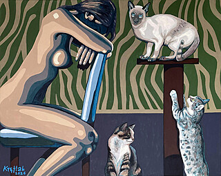 sygn. l.d.: Krężlak '22; sygn na blejtramie: Robert Krężalk "Anioł na wakacjach"
