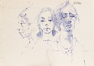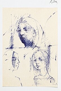 długopis, papier kremowy naklejony na papier; 14,3 x 20,5 cm;