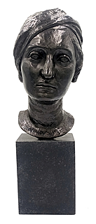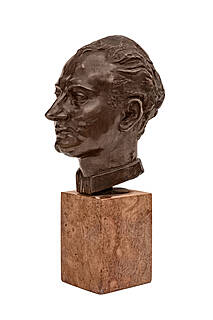 brąz, podstawa drewniana; 32 x 20 x 16 cm; wys. z podstawą 39 cm.