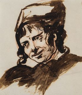 Tusz lawowany, sangwina, papier; 11 x 9,5 cm