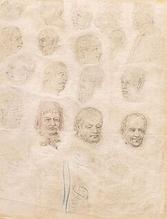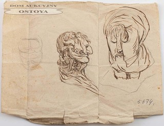 Ołówek, sepia, papier; dwustronny; 18 x 21 cm