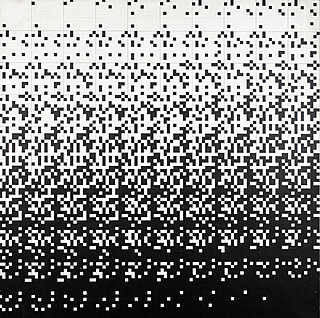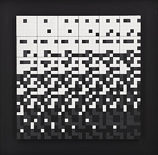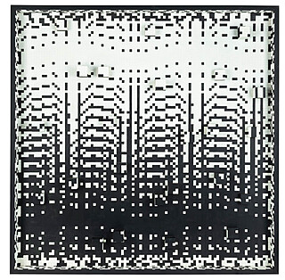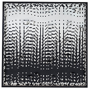 akryl, płyta pilśniowa; 17 x 17 cm (wymiar kompozycji), 31 x 31 cm (wymiar z ciemnym podobraziem);