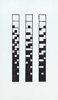 teka 10 serigrafii (+ 1 w formie wprowadzenia), 20 x 20 cm, oryginalna tekturowa teczka; egzemplarz numer 21 (z nakładu 40 egzemplarzy);