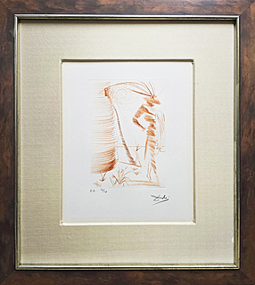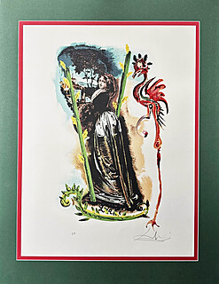 Litografia kolorowa według oryginalnego gwaszu Salvadora Dali z 1979 roku, papier bawełniany Privileg, wymiary: 37 x 27 cm w świetle passe-partout, 50 x 38 cm w oprawie passe-partout, sygnowany na płycie w kompozycji „Dali”, na...