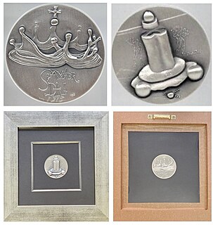 Wymiary: średnica 5 cm, waga medalu 50g, w oprawie 23 x 23 cm