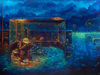akryl, płyta, 100 x 70 cm; sygn. p.d.: SM