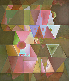 akryl, płótno, 70 x 70cm; sygn. p. d.: SV. (monogram wiązany ujęty w romb);