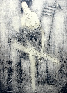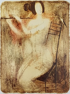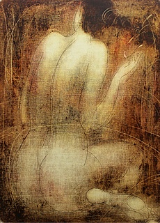 monotypia, papier z fakturą płótna; 55,5 x 40 cm (w świetle oprawy), 84 x 67 cm (oprawa, rama); sygn. i dat. p. d. (cyrylicą); na odwrocie nalepka z opisem