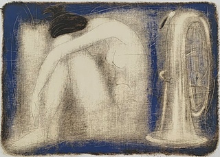 monotypia, papier z fakturą płótna; 55,5 x 40 cm (w świetle oprawy), 84 x 67 cm (oprawa, rama);