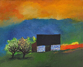 Opisany na odwrocie: "Stanisław Rodziński | DOM I DRZEWO | 2007 | akryl"