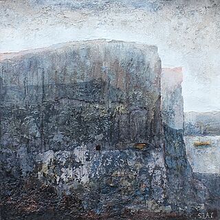 sygnowany, datowany i opisany na odwrociu: 'S. J. A. Tomalak | Fragment 525 | z cyklu "Niebo i ziemia" | 2018-19r. | Inspiracja: nadciąga...