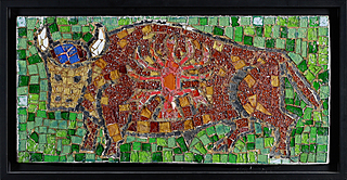 mozaika szklana na płycie, 28 x 58 cm. (niesygnowana)