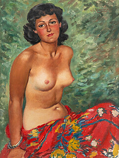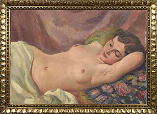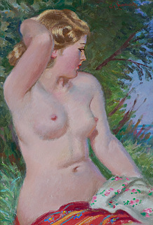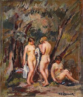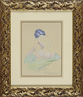 Na odwr. napis zielonym tuszem: Stanisław Żurawski | „Półakt na tle zieleni“ | (35 x 50) olej.