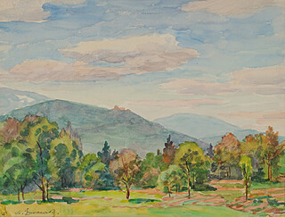 Opisany ołówkiem na odwrociu: St. Żurawski / Krajobraz z P….kowa (nieczytelne).