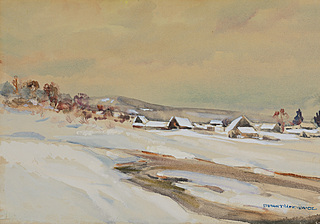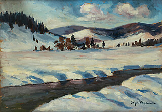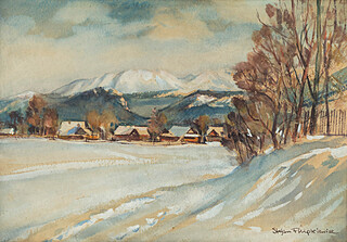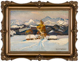 Na tzw. zaplecku u dołu kartka z napisem (maszynopis): Filipkiewicz – Pejzaż zimowy |...