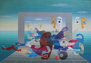 sygn. p. d.: S. Krygier / 88 na odwrociu opisany: Z CYKLU SYMULTANIZM FORMY 114 X 146 MONA LISA STEFAN KRYGIER OLEJ FARBY TALENS REMBRANDT / GRUN KLEJOWY