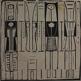 linoryt tłoczony, barwny, papier; 77 x 47 cm;