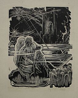 Praca pochodzi z książki Madame de Villeneuve, La Belle et la Bete. Boix originaux de Stefan Mrozewski, 1949,...