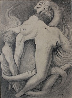 ołówek, węgiel, papier, 18 x 20,5 cm (w świetle oprawy);