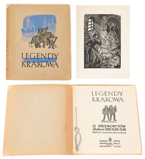 teka drzeworytów, 14 plansz z ochronnymi bibułkami i tytułami odbitymi stemplem, wydanę przez Sp. Pracy Imago-Artis w Krakowie