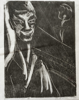 drzeworyt na bibułce, 12 x 10 cm na arkuszu 16 x 16 cm,