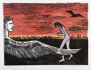 drzeworyt barwny na papierze czerpanym, 22 x 14,5 cm na arkuszu 31 x 23 cm,