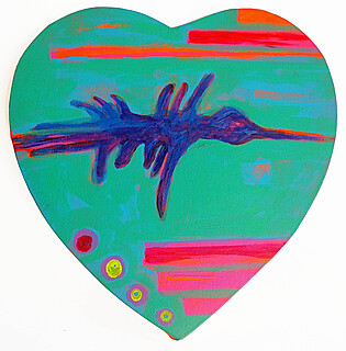 opisany na odwrociu „Sylwia Chudy-Leśnik 2024 Koliber Kropka (serce) akryl/Płótno”