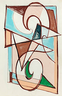 tempera/ karton, 63x79 cm; na odwrociu napisy: Kompozycja I oraz Kat 102