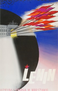 Przedstawienie kuli ziemskiej, której centrum stanowi budynek warszawskiego Muzeum Lenina. Efektowny pomysł “przeszycia" kompozycji diagonalą drzewców z flagami, wprowadza do niej...