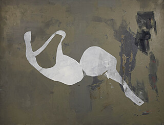 olej, technika mieszana (piasek, klej, nakładki metalowe), płótno lniane, 115 x 150 cm;