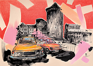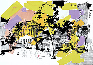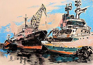 technika mieszana (akryl, tusz, ołówek), papier, 35 x 50 cm, sygn. l.d.: logo / 2025 / Ocheredko T