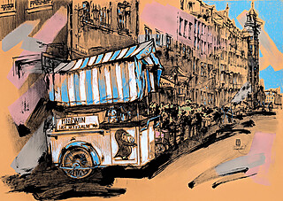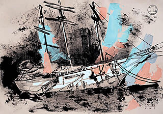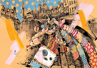 technika mieszana (tusz, gwasz, ołówek), papier kolorowy, 35 x 50 cm