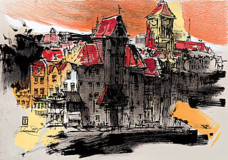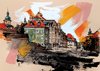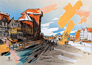 technika mieszana (akryl, ołówek, tusz), papier, 42 x 60 cm, w oprawie: 50 x 70 cm,