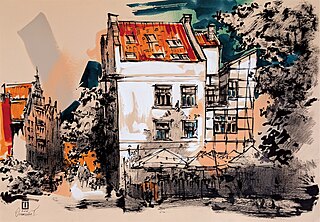 technika mieszana (gwasz, ołówek, tusz), papier, 35 x 50 cm, w oprawie passe-partout: 50 × 70 cm,