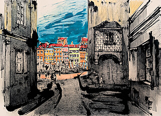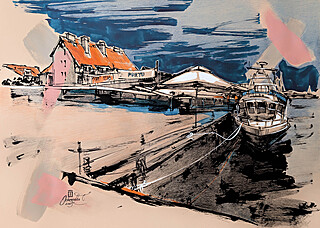 technika mieszana (tusz, gwasz), papier, 35 x 50 cm,