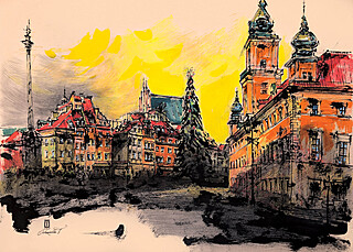technika mieszana (tusz, akwarela), papier, 42 x 60 cm, w oprawie: 50 x 70 cm,