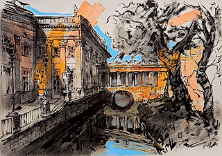 technika mieszana (akryl, ołówek, tusz), papier, 30 x 42 cm, w passe-partout: 40 x 50 cm,