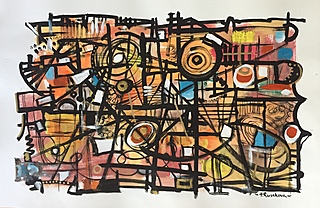 technika mieszana (akryl, tempera), papier, 49 x 59 cm,