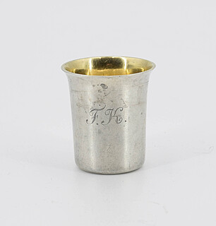 srebro próby 12, częściowo złocone, cechowane (próba 12, znak warsztatowy, TKlima/szewski Warszawa - kursywą); wys. 4 cm, średnica 3,5 cm; waga 30 g.