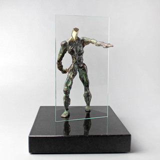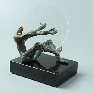 brąz, szkło, granitowa podstawa, 14 x 14 x 9 cm, ed. 5/10,