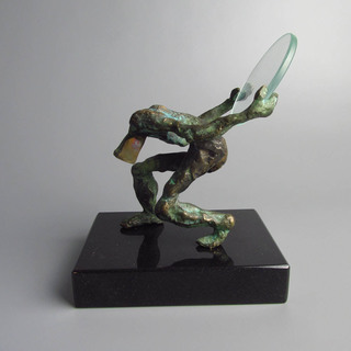 brąz, granit, szkło, 18 x 15 x 7 cm