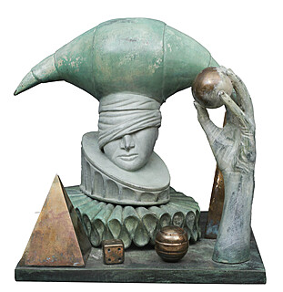 rzeźba, brąz, 38 x 41 x 17 cm,