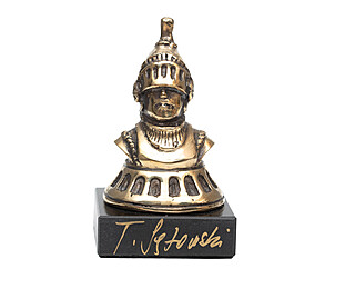 Brąz, wys. 9,5 cm, podstawa kamienna, wys. cłk. 11,5 cm