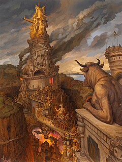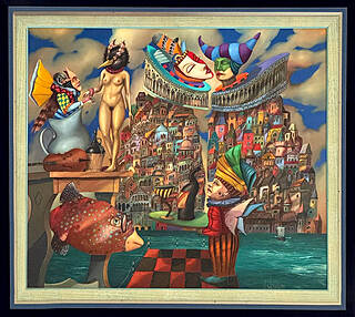 sygnowany l.d.: 'T.Sętowski' oraz opisany na odwrocie: '"Faktoria Minotaura" | olej, płótno 130 x 97 cm | Tomek Sętowski', dołączony certyfikat autentyczności