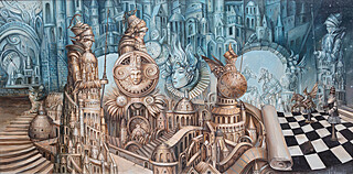 sygnowany p.d.: 'T.Sętowski' oraz opisany na odwrocie: '"Palatium Amfitryty" | 38 x 60 cm, akryl, olej na płycie | Tomek Sętowski'
