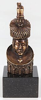 brąz, cokół kamienny, wysokość całkowita: 28,5 cm 14 × 18 cm (wym. rzeźby), 10 × 10 × 8 cm (wym. cokołu)